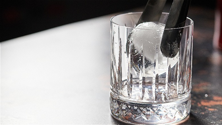 - Add ice to a rocks glass.