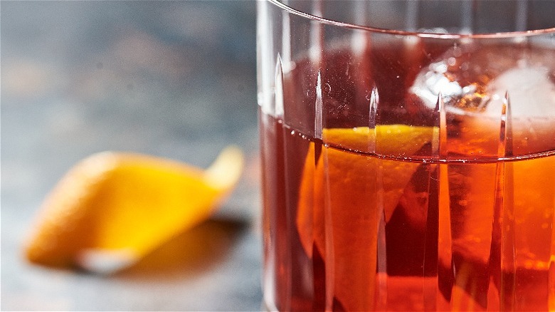 This one's an easy one to garnish — just peel an orange and drop it in. The bright citrusy flavor complements the bitter Campari and sweet whiskey, so it's a better choice than zingy lemon or lime. For even more orange flavor, drop in a whole orange wedge or swap for a striking red blood orange. Like an old fashioned, it's not uncommon to also add a syrupy Luxardo cherry. This sweetens the drink considerably, so use this if you really hate the bitter taste of Campari.