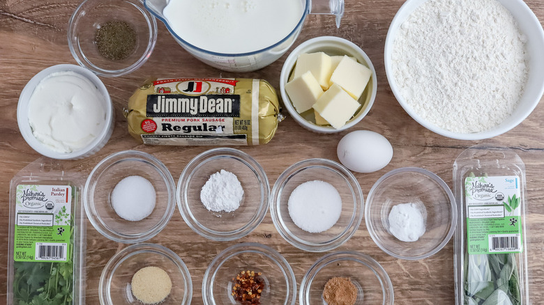 Gather the ingredients for biscuits and herbed sausage gravy