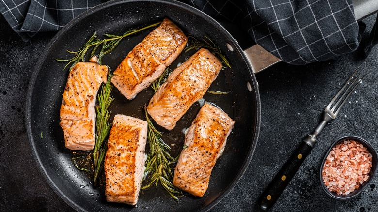 Beyond flavor, you'll find loads of health benefits in salmon. Filled with heart-healthy omega-3 fatty acids, B vitamins, and potassium (per Healthline), you'll gain lots of valuable nutrients by enjoying salmon regularly.