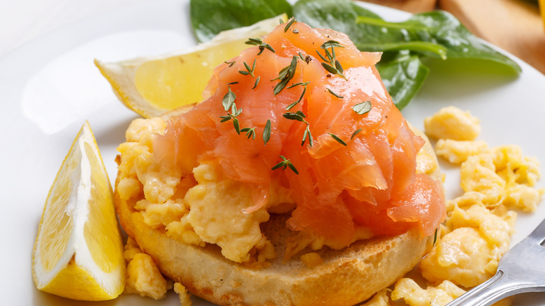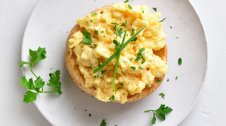 One of the joys of cooking scrambled eggs is its versatility. You can entirely change the flavor of the dish by topping it with a surprising finish. You've likely already heard of adding ketchup or hot sauce to your eggs, but what about something different? There are countless garnishes that pair well with scrambled eggs and the one you choose depends entirely on what direction you're inspired to take the classic in.