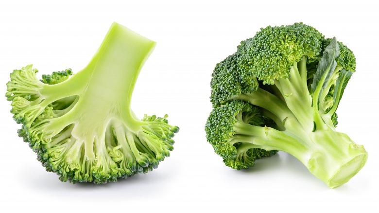 But the story of broccoli doesn't end there. In recent years, a new hybrid of broccoli has emerged called broccolini, a cross between broccoli and Chinese kale, or gai lan. The difference between broccolini and its namesake parent plant is both in appearance and taste. The former owes its long, tender stalks, small, delicate florets, and a sweeter, more delicate flavor to gai lan. Another modern-day broccoli hybrid is broccoflower — a chartreuse cross between broccoli and cauliflower that is sometimes confused with romanesco.