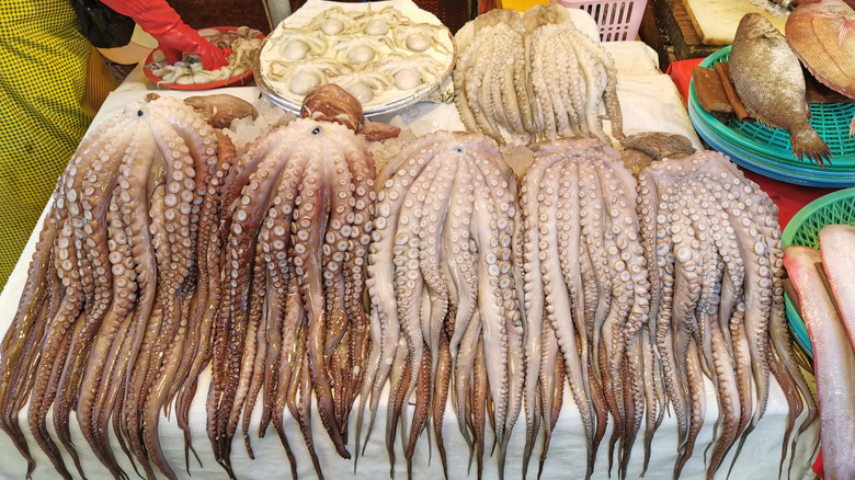 In Korea, a dish known as sannakji is exactly that — the eight-tentacle invertebrate sliced up fresh from the sea and served to diners swiftly. Unlike the appearance, the taste is not particularly flashy — salty and slightly oceanic to the taste. Texturally, though, is where it gets interesting. In addition to being chewy and a little slimy, the sea creature's tentacles frequently continue to wriggle as they're eaten. Such a characteristic garners intrigue for some diners and generates uneasiness for others — with some animal activists considering the dish cruel.