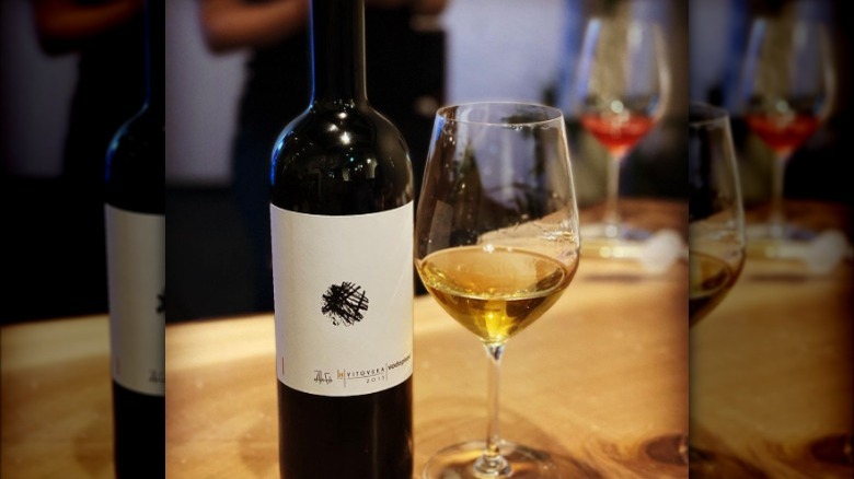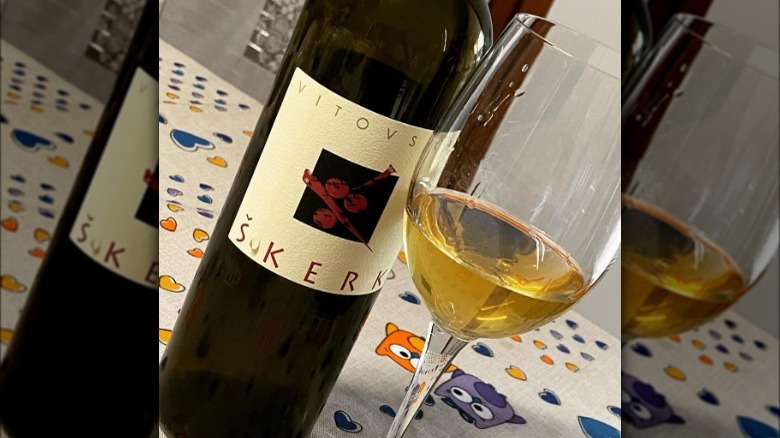 OKR is a subtle take on orange wine (a term that Milan is also not so fond of), which makes it a good introduction to the style. The name itself refers to the word ochre, a type of natural clay that comes in shades of orange. Chardonnay, grüner veltliner, sauvignon blanc, and gewürztraminer come together in this fruit-forward, zesty, and herbaceous wine. With notes of pomelo, passionfruit, and pineapple, there's a vibrant tropical allure to this wine that fits Nestarec's description of its "everyday easy drinking vibe." The zingy fresh flavors are a hit whether you're sipping it solo or serving it with food. Plus, this is the perfect bottle to keep on hand if you're hosting as it comes in a convenient 1-liter format.