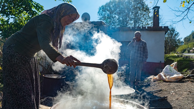 This sweet and sticky substance still hasn't reached the same ubiquity in the U.S. as in the Mediterranean. There are a few online purveyors, which mainly sell imported varieties from Greece or Turkey. Sometimes, it's labeled with a different name — search for "pekmez" or "petimezi" instead. Grape molasses can also be located in specialty Mediterranean groceries. And if you're in a country where this type of syrup is common, simply head to the market. It's widely available around the Mediterranean.