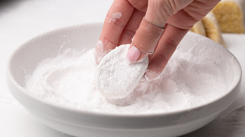 - If you would like, shape the cookies into a rough oval shape (the classic shape of the ricciarello), and then coat them well on both sides with the confectioner's sugar in the bowl.