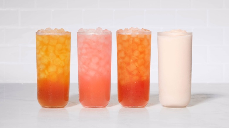 Year-round, Chick-fil-A fans enjoy the chain's lemonade for its refreshing sweetness and simple ingredients: lemon juice, water, and cane sugar. Still, classic "lemon" isn't the only flavor to ever grace Chick-fil-A's bevy lineup. Watermelon Mint Lemonade first debuted in 2017, and it's been on a six-year hiatus ever since — but fans never forgot about it. Now, according to a press release, back by popular demand, Chick-fil-A's Watermelon Mint Lemonade will be returning to stores on Monday, April 3. The fan-favorite sipper will also be joined by three all-new flavored refreshers: here's what's on the menu.