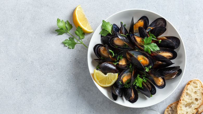 Admittedly, the appearance of mussels can be off-putting for those who aren't used to eating them. That being said, if you can get over their appearance, you're probably going to like them. They mostly just taste salty, but they can take on the flavors of whatever you cook them in. We love steaming them in wine or beer with plenty of aromatics — the broth that's created in the process may even be better than the mussels themselves.