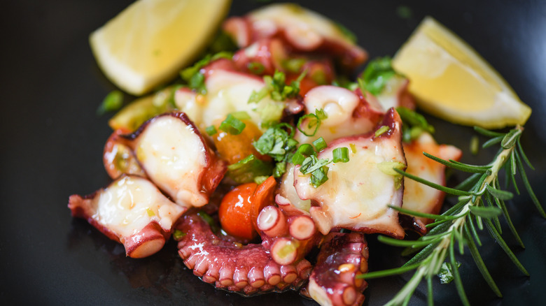 In its best form, octopus gets nice and crispy on the outside — it's even better if the octopus' suckers get charred in the cooking process. On the inside, though, the meat is moist and delicate, offering a dynamic experience in a single bite. If you're a person who loves a lot of interesting textures in their food, octopus probably comes pretty high on your list, as well. Add in some subtle seasonings, and it's no wonder why octopus ranks so high on our list.