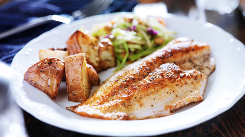 If you're looking for an alternative white fish to tilapia or cod, you might want to seek out mahi-mahi, which has an especially pleasant texture to it, with a nice balance of flavors. Its flavor is fishier and more pronounced than many other types of fish out there, but it's not overpowering, which makes it a great option for seafood lovers who want a milder — but not tasteless — option. It also features a mild sweetness to it, which makes it pair especially well with salty and savory flavors, creating even more flavor balance within a dish. However, since it's so lean, you'll want to cook it carefully to avoid overcooking, which can lead to a dried-out and somewhat unpleasant texture.