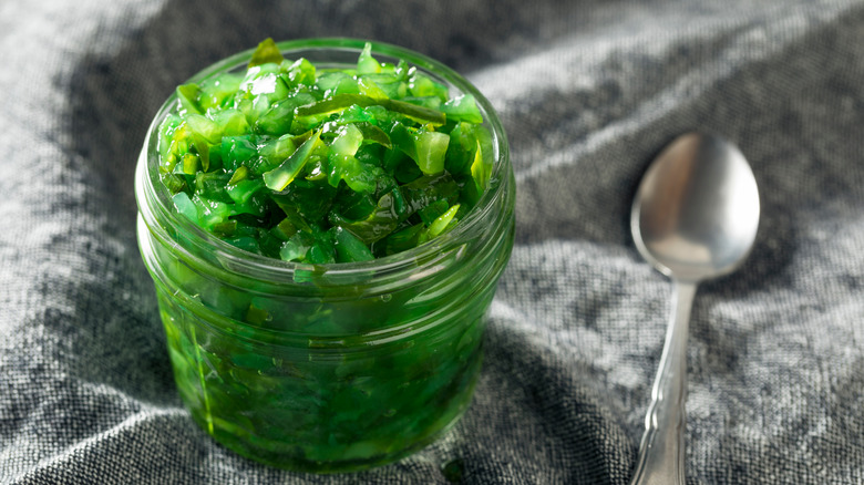 However, this atomic relish also has some immense appeal. In fact, a Chicago-style dog just won't be the same if you make it without this signature ingredient. This is why you find Vienna Beef selling neon-colored relish in grocery stores. However, there's a good chance that most customers purchase such a color of relish strictly for a Chicago-style hot dog. Of course, this shouldn't stop you from including it on other tasty foods that might need a little brightening up.