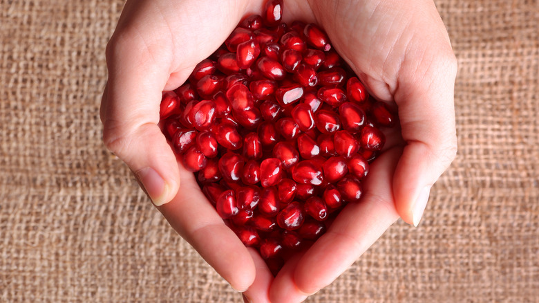 When you crack one of these babies open, there are hundreds of fruity and juicy seeds that can add a sweet and sour component to a number of dishes. You can use it to make a pomegranate barbecue sauce for a winter soiree, a chai pomegranate pudding, or even in Ina Garten's pomegranate spritzer. This fruit is both delicious and versatile. Of course, chances that you will be able to use all the pomegranate seeds in a single sitting, may not be realistic. The great news is your freezer can help you preserve this precious fruit so you can enjoy them in another meal or drink — and the process is easier than you can imagine.