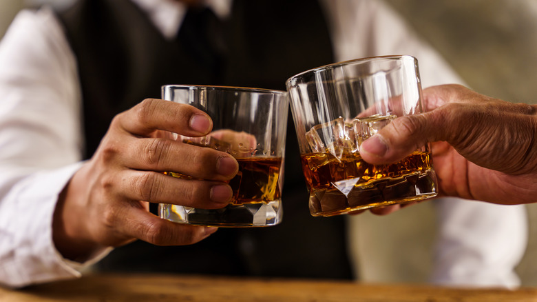 Bourbon, the ultimate American spirit, is a type of whiskey made from a primarily corn-based mash, and it is mainly produced in Kentucky, in or near its namesake of Bourbon County. Its special production methods result in a rich drink with notes of caramel, vanilla, and oak. But while bourbon-based cocktails like the Old Fashioned and the Bourbon Smash are slid across thousands of bars dozens of times a day, it's not as common for someone to simply order a glass of bourbon. After all, it's not like you're Don Draper pouring 10 AM celebration toasts from the cabinet of crystal decanters in your office bar.