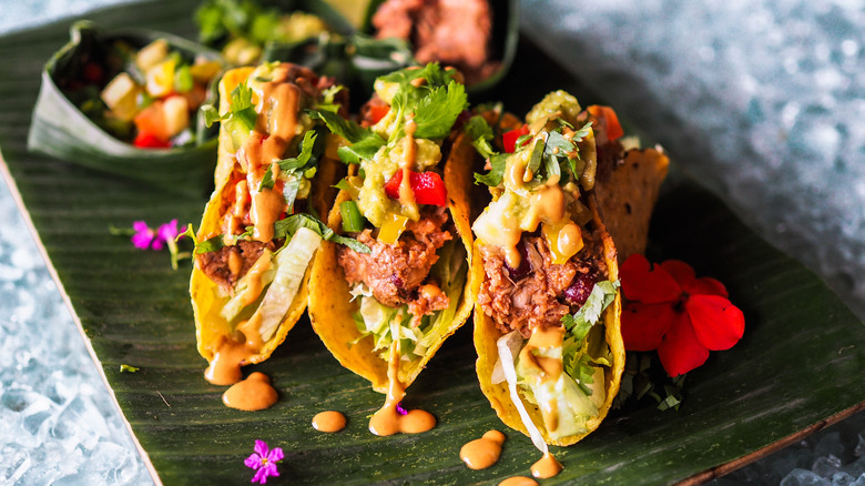 As you're rinsing your jackfruit, you may also notice that they come in large chunks. While you can leave them as they are, it's recommended that you trim them because some may contain parts of the jackfruit's core. This is particularly more important if you plan to eat your jackfruit raw, as the texture of the core isn't as noticeable once the fruits have been cooked. Again, the canned jackfruit is perfectly safe to eat straight out of the can, but it tends to taste best warm and with seasoning. If you're craving the fruit in a meal, try making our pulled jackfruit tacos recipe that features the perfect flavor balance of garlic and minced serrano chiles.