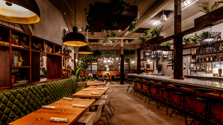After initially emerging as a kind of speakeasy concept, Fern Bar blossomed into its current iteration in 2018, with a much larger space and the opportunity to expand menu items. Nowadays, the menus include thoughtful seasonal plates like stuffed roti with butter chicken and nettle yogurt, falafel with pumpkin seed hummus and dukkah, and tofu with turmeric and peanut veloute, cauliflower, green chile, and cucumber. Cocktails are just as vibrant, like the Neighbor's Bounty with white tea gin, persimmon, lemon, and salted almond foam, and the Down the Rabbit Hole, with gin, tequila, carrot-ginger syrup, kimchi juice, lemon, absinthe, and aquafaba (the liquid form of cooked chickpeas that works wonderfully in cocktails).