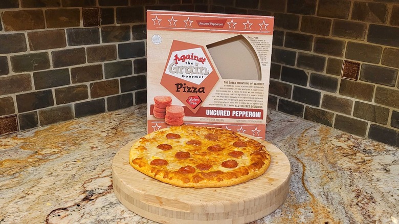Against the Grain has a basic line of gluten-free pizza available, but for the purposes of this test, we selected one from the company's more expensive "gourmet" line. Priced at $14.99, it's the most expensive pizza on this list and, in terms of cost, is close to competing with the takeout gluten-free pizzas available at many pizzerias these days. It also has a unique crust. Instead of common cauliflower or one made from something like chickpeas, Against the Grain opted to use tapioca for its product. This gives the customer options. You can cook it on a baking tray if you like a soft crust or throw it directly on the rack for a little longer if you want a harder crust.