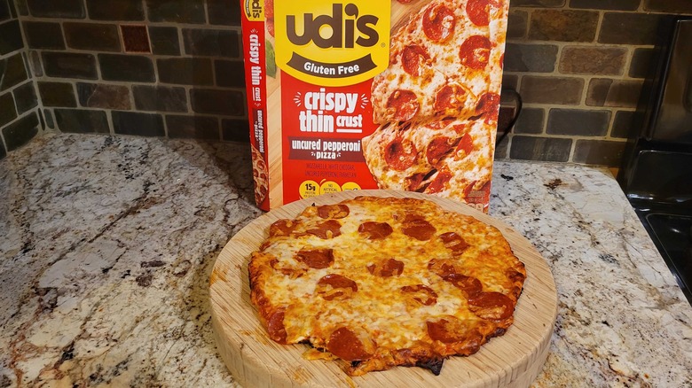 1. Udis Gluten Free Crispy Thin Crust Uncured Pepperoni Pizza