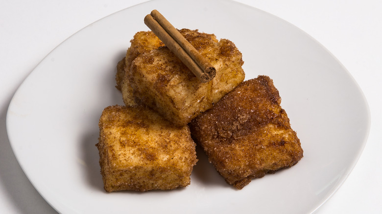 However, it's in Spain where this springy little dessert came into its own. Called leche frita, these deep-fried custard fritters dusted with a coat of sugar and cinnamon are beloved, utterly delicious (milk pun intended), and are just as much at home as street food as they are served up on a gleaming piece of porcelain. Leche frita is so popular in Spain that its origin is often disputed between regions; it seems all of Spain wants a piece of the leche frita story. But dessert lovers beyond Spain have fallen in love with these simple treats, which are, if you've got the patience, one of the easiest you can make.