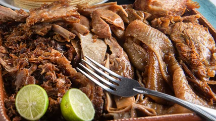 Both types of meat are prepared in large quantities and built for sharing, especially on festive occasions. Frequently available at weekend markets, they're associated with a convivial atmosphere. Carnitas are available all around Mexico, but renditions from Michoacan are especially popular. Barbacoa is also ubiquitous but is more strongly associated with Central Mexico. It's hard to go wrong with either — but look for carnitas' more characteristic light color to tell the two apart.
