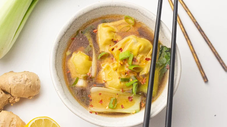 The unsung hero of the Chinese restaurant experience — we see you, wonton soup, and we would never take you for granted. Luckily, it only takes a few steps and about 20 minutes to make this familiar favorite at home. After all the ingredients get tossed into a pot and simmered on the stove, your wonton soup is ready to enjoy.
