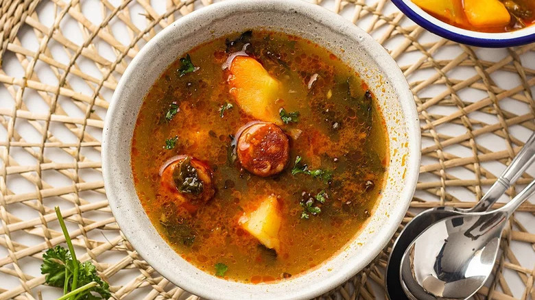 Ask any diehard soup fan and they'll tell you the truth: Soup season lasts all year round. In a Tasting Table exclusive survey, over 35% of foodies named chicken noodle as their favorite go-to cozy soup, but there are so many options out there that are just as comforting and easy to make. Fragrant ginger and a hint of chili in Tom Yum soup can awaken your senses during a winter slump or help clear your sniffles, and the simple combination of ham and beans is like getting a big hug in a bowl.