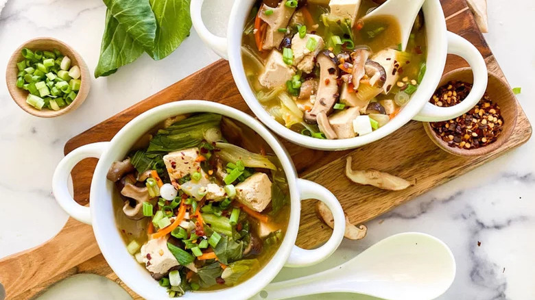 It's time to start making your own miso soup at home so you can enjoy the dish at the perfect temperature every time you want it. This recipe is vegetarian-friendly and inexpensive: All it takes is miso paste, tofu, vegetable broth, mushrooms, scallions, powdered ginger, and soy sauce. Still chowing down on your teriyaki chicken leftovers? No sweat — this soup will keep in the fridge for up to five days.