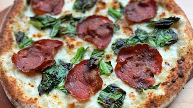 At Bigalora Cucina, the pizza crust is made from a sourdough starter, which does help give the crust an airy, spongy consistency. This is perfect for absorbing additional flavors such as dripping marinara sauces, melting cheeses, and the oils weeping off of sizzling meats. In addition to having a brick-and-mortar location, if you're around Detroit you might catch sight of the Bigalora Wood Fired Pizza Truck around town as well.