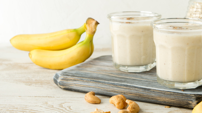 In fact, cashew cream can be added to any smoothie recipe, even those with citrusy fruits because, unlike milk, it won't curdle when in contact with acids like lime juice or pineapple. It's a great way to add healthy fat, fiber, and protein without compromising on texture or flavor. In fact, cashew cream can be made extra thick to the point where it can actually add additional creaminess to an otherwise thin smoothie. Who needs protein powder when you have cashews?