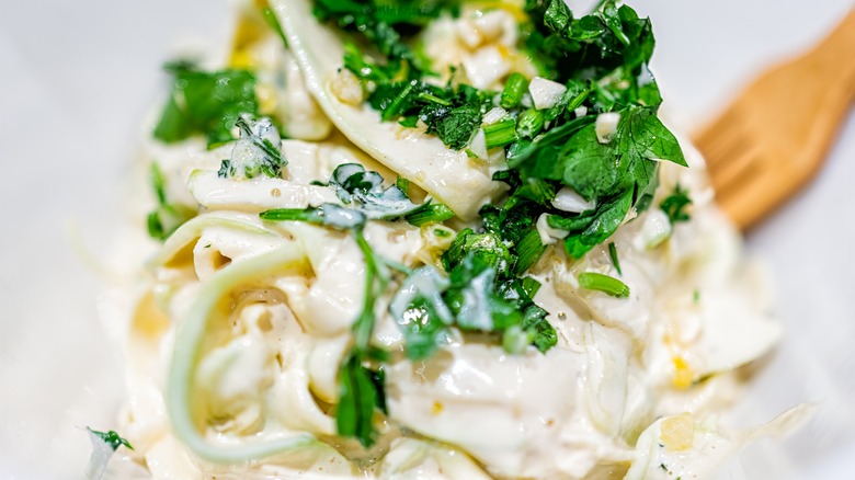 A wave of plant-based eating is coming to America and with it has come a whole new vision of innovative cooking. Chefs and home cooks are getting creative with nuts, seeds, grains, and produce, and we've seen some interesting meat and dairy alternatives out there. Foods like banana peel pulled "pork," cashew "cheese," and rice paper "bacon," have left the days of rice milk and soy patties in the past. One of the innovations that have changed the way vegans cook and eat is the introduction of cashew cream. It's a versatile dairy-free addition to make dishes creamy, and there are plenty of ways to use cashew cream in your cooking.