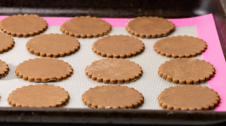 When you're ready to bake the cookies, preheat the oven and prepare a baking tray. Roll out the rested speculoos cookie dough, and then use a cookie cutter to cut out cookies from the dough. It doesn't matter which shape cookie cutter is used for this part, as the cookies will be broken down into crumbs. Though, you may have a few leftover to enjoy alongside your cookie butter! Place the cookies onto the prepared baking tray, and then bake them for 12 minutes until they are just beginning to brown. Set the cookies onto a wire rack to cool completely.