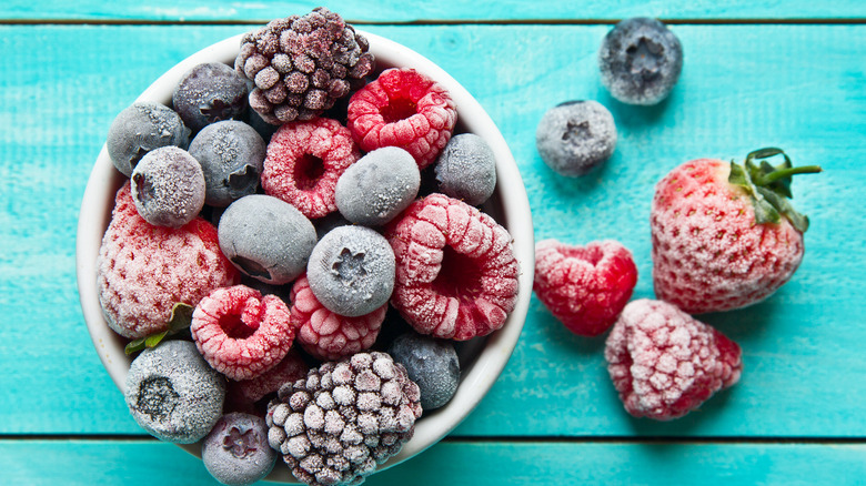 To ensure your berries are 'gram-worthy, you want to make sure that you freeze them correctly. Wash them, gently pat them dry, then spread them out in a single layer on a sheet pan before freezing. This will ensure that your berries aren't stuck together in a mushy lump as they thaw. You're able to drop in individually frozen berries, and your cocktails will look straight out of a photo shoot.