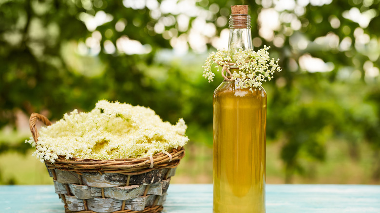 Elderflower liquor is a surprisingly recent creation, invented in 2007 by a distiller named Robert Cooper. It's a spirit that is made with fresh elderflower blossoms, picked at the height of their season, and infused. Its sweet, floral profile pairs exquisitely with the botanical base of gin.