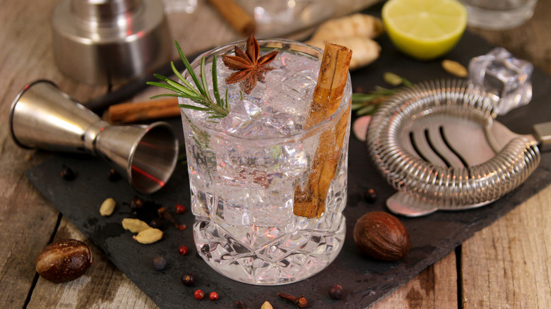 When gin is infused during the distilling process, it gets its botanical flavor from a myriad of sources. Juniper tends to be the most forward note, but juniper berries are just one of many, many spices that make gin distinct. Among the other ingredients, you'll find caraway, anise, cardamom, cloves, and fennel. Though these flavors might not be the first to hit your pallet, by garnishing with additional spices, you'll be highlighting those layered flavors.