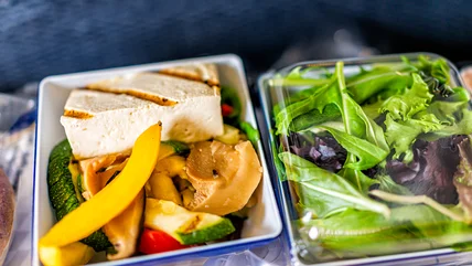 Air Emirates has been widely recognized as one of the best providers of plant-based food aboard its aircraft, but also as a provider of a culinary experience ten thousand feet in the air. There are numerous vegetarian options aboard Air Emirates, which can be specially ordered up to 24 hours before takeoff. The Indian Vegetarian Meal option includes curry and spices often used in Indian cuisine served alongside tofu and grains. Air Emirates also offers a vegetarian Jain meal, which does not contain dairy, eggs, root vegetables, or animal products.