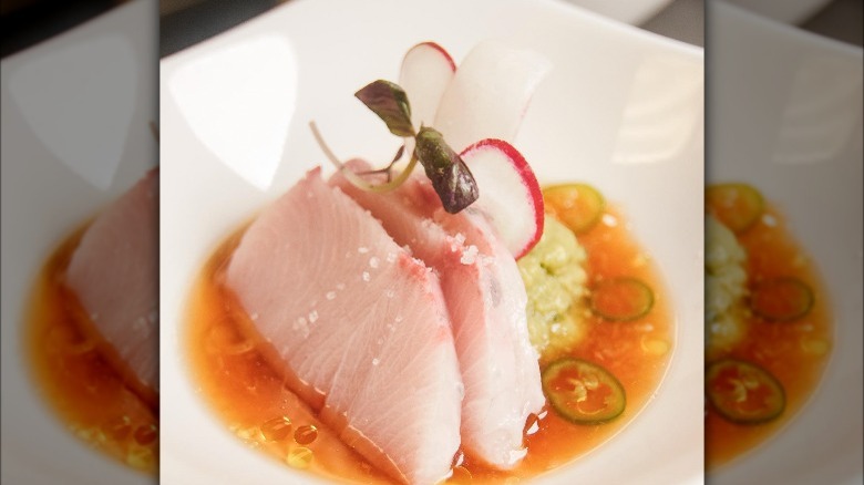 The restaurant's scallops are a solid go-to that is dependably delicious and is beautifully presented on a half-shell before being complemented with tangerine, pomegranate, serrano, cilantro, and lava salt. The King Kanpachi tostada is another signature dish that shouldn't be passed up. Umami tosazu sauce, acidic grapefruit, luxurious avocado, crisp radish sprouts, trout roe, and a slightly peppery nasturtium combine to craft an unforgettable bite.