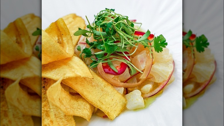 If you're looking to add some more shellfish to your plate, Fishing With Dynamite's Maryland blue crab cake, house-brined dill pickles, and a whole grain mustard remoulade combine to create a crisp yet decadent appetizer. The Koshihikari rice entree is another crowd favorite that is built on a base of Japanese rice complemented by a chicken dashi broth, topped with shrimp, uni, and blue crab, and finished with a cage-free egg yolk. Make sure to round out your meal at Fishing With Dynamite with its famed Key lime pie.
