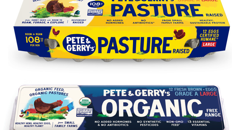 Although they are packaged differently, Nellie's eggs and Pete and Gerry's eggs are actually sister companies. A closer look at the websites of each will reveal that both companies have the same mailing address, and both are committed to the standards put in place by Humane Farm Animal Care. However, it is not immediately obvious that these two are connected to one another. While the differences between the two are few, one certainly stands out. Pete and Gerry's eggs aren't just pasture-raised, they are also organic. But, like Nellie's, Pete and Gerry's practices beak trimming.