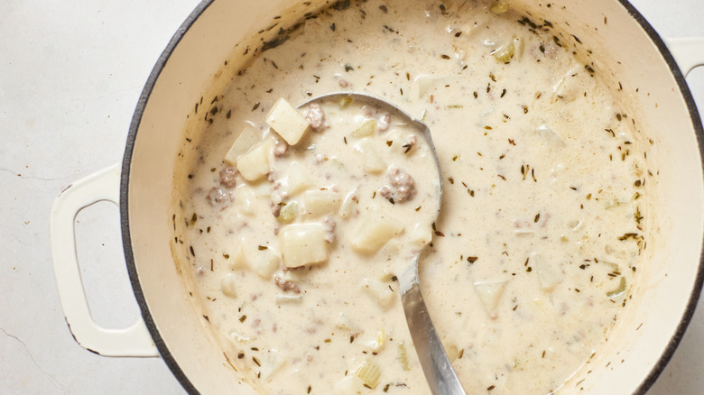 "Hamburger soup is essentially a creamy potato soup with ground beef," McGlinn says. "You could also think of it as a cheeseburger with fries — and truthfully, it actually does taste like it, especially with the croutons." If you love creamy soups with potatoes and hamburgers, and you would like to get dinner on the table in under an hour, this recipe needs to be in your weeknight rotation.