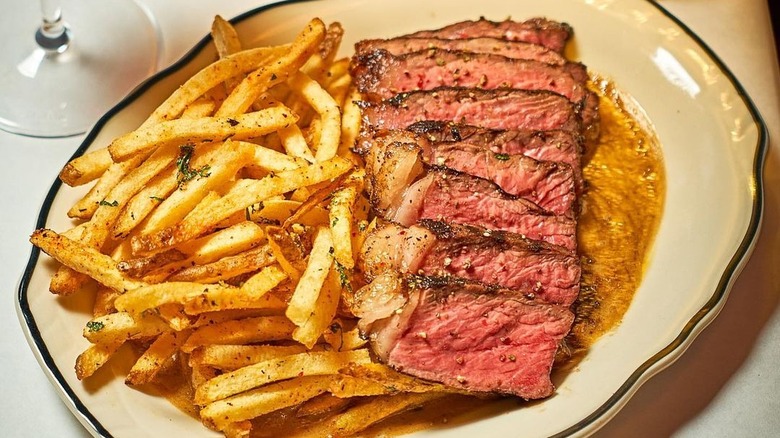 Bringing traditional French bistro fare to Hell's Kitchen, Steak Frites Bistro offers diners an authentic French menu and decor to match. As the name implies, the highlight of the restaurant is its steak frites dish, which comes in two different iterations: a 9-ounce hanger steak and a 16-ounce dry-aged New York strip steak. However, this is far from the only notable dish on the menu. Other French favorites like a cheese plate, escargot, roast chicken, and cheesy gnocchi with mushrooms round out the rest of the dinner menu.
