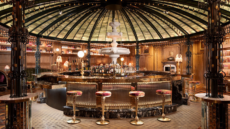 "What we were trying to do with Raised by Wolves was create an unexpected venue in an unexpected place," bartender Erick Castro told Tasting Table. The bar is impeccably kitted out with custom draft handles shaped like golden wolf heads, hand-painted walls, fringed lampshades, velvet-topped barstools, chessboard tables, floor-to-ceiling bookshelves, and an enormous emerald-green glass domed ceiling.