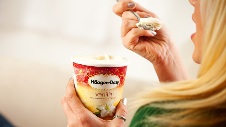 Whether it's French perfume, Italian leather, or German automobiles, Americans tend to believe that European goods are equated with sophistication, fine craftsmanship, exclusivity, and chicness. The Mattuses understood this concept and intentionally chose a European-sounding title that would evoke the romanticism and artistry of Europe. Even the use of the umlaut (those two tiny dots over the first "a") was purposefully chosen; Reuben believed it would grab consumers' attention. Hilariously, umlauts aren't even used in the Danish language. But as far as Americans were concerned, Häagen-Dazs was the epitome of sophisticated, superior ice cream and they literally ate it up.