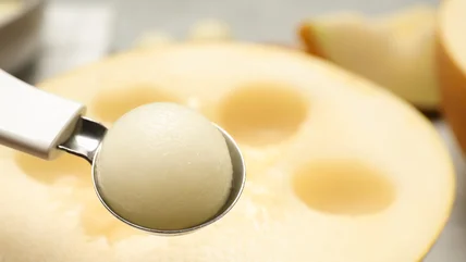 Apart from using the frozen melon to flavor spicy melon cocktails and sparkling sodas, the icy pieces of fruit can be easily added to fruit salads or used to make skewers with mozzarella, prosciutto, and basil leaves. Melon balls can also be soaked in alcohol before freezing and served as an adult-friendly treat or alongside scoops of ice cream.