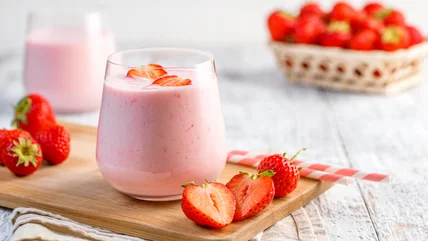 Before you eat or use them in recipes, wash your strawberries to remove any dirt on them, including the leaves and stems. Along with your other smoothie ingredients, just drop the berries in as they are — no chopping, hulling, or halving required. Once it's ready, you'll have the same sweet, pink, delicious strawberry smoothie you're used to but with even more vitamin C, antioxidants, and antimicrobial properties. What's not to like about that?