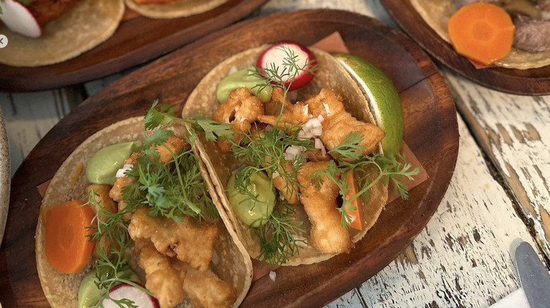 Starting at $16, tacos with homemade chorizo, mesquite-seasoned chicken, and pineapple-marinated pork are served — and there are beer-battered fish and vegan options for non-meat eaters. For heartier dishes, there are enchilada platters priced at $25. Each one is served with black beans, crema fresca, queso fresco, and avocado. The Doña Blanca, in particular, features a presentation of roasted poblanos and onion rolled into corn tortillas.