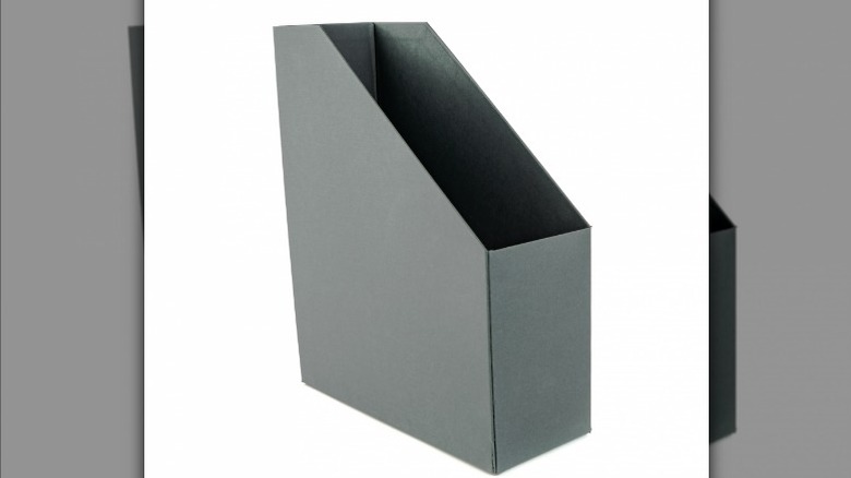 These L-shaped storage containers also go by the name of magazine holders and desk organizers and can be purchased from office supply stores and Amazon for about $6 to $8 each. Consider purchasing in a few different colors for more organizational options and see how your impossibly messy freezer can become impressively organized.
