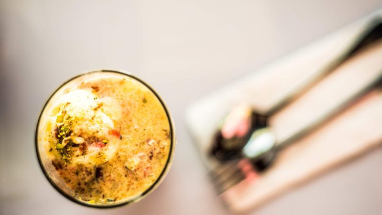 According to an NPR segment on falooda, the sweet treat was originally meant to be "lingered over with family and friends... to hang out and tell stories as you slowly fill your belly with this cold treat." Some locals also believe that the best way to eat falooda, even if it's served in a glass, is with a spoon — and to dig all the way to the bottom for a complete scoop, ensuring you don't miss out on any of the goodies that make up the dessert.