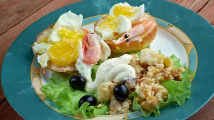 For a coastal fix, simply swap out the Canadian bacon for fresh crab and you've got yourself a plate of eggs Neptune! This seafood version is widely celebrated along the shorelines of America, specifically in the New England, Gulf Coast, and Northern California regions due to their fresh waters that house the purest blue, king, snow, and stone crab species. This delicacy is often served on Mother's and Father's day with a fresh green, lightly-dressed salad to pair.