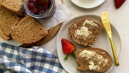 If you want to know how to make pumpernickel bread, recipe developer Miriam Hahn brings us this easy recipe and says, "Making your own pumpernickel bread may seem intimidating, but it's really quite simple — you don't even need to get the stand mixer out. My favorite ingredient in this recipe is the molasses. It's sweet but leans more towards a smoky, caramel taste. That, combined with the cocoa powder, makes this bread very versatile. You can serve it for breakfast or dinner." Pumpernickel bread makes a great sandwich with deli meats and sauerkraut or a nice complement to your breakfast with butter and jam.