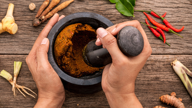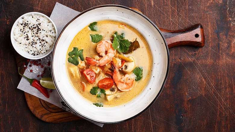 Since lemongrass is native to Southeast Asia, it naturally complements other traditional ingredients from the same region. It pairs particularly well with coconut milk. The citrus and herb notes in the lemongrass are rounded out by the creamy coconut flavors, resulting in a sumptuous, rich-tasting mixture that can be reimagined in a ton of different ways. You can taste this duo at work in comforting favorites like Tom Kha soup, where it harmonizes with garlic, lime, and Thai birdseye chile, and again in Malaysian Laksa. The combo is also delicious as a base for coconut-simmered kabocha squash — where this time, it's mixed with Japanese squash, ginger, and jalapenos.