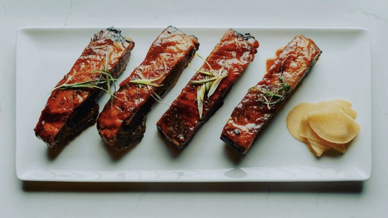 In fact, much of the bar's menu pulls from both real and imagined Pan Am plane tickets, like one journeying from Japan to Brazil. The Rio to Tokyo tipple features Brazilian sugar cane rum and dry sherry, spiked with miso pineapple, wasabi coconut, and green shisho. And the food offering includes a short menu of "airline snacks," made up of sushi hand rolls and some jazzed-up nuts. Whether you're there for a drink or more, you'll feel like a first-class passenger all cozied up on a sapphire-colored banquette amidst the sleek wood walls and moody lighting.